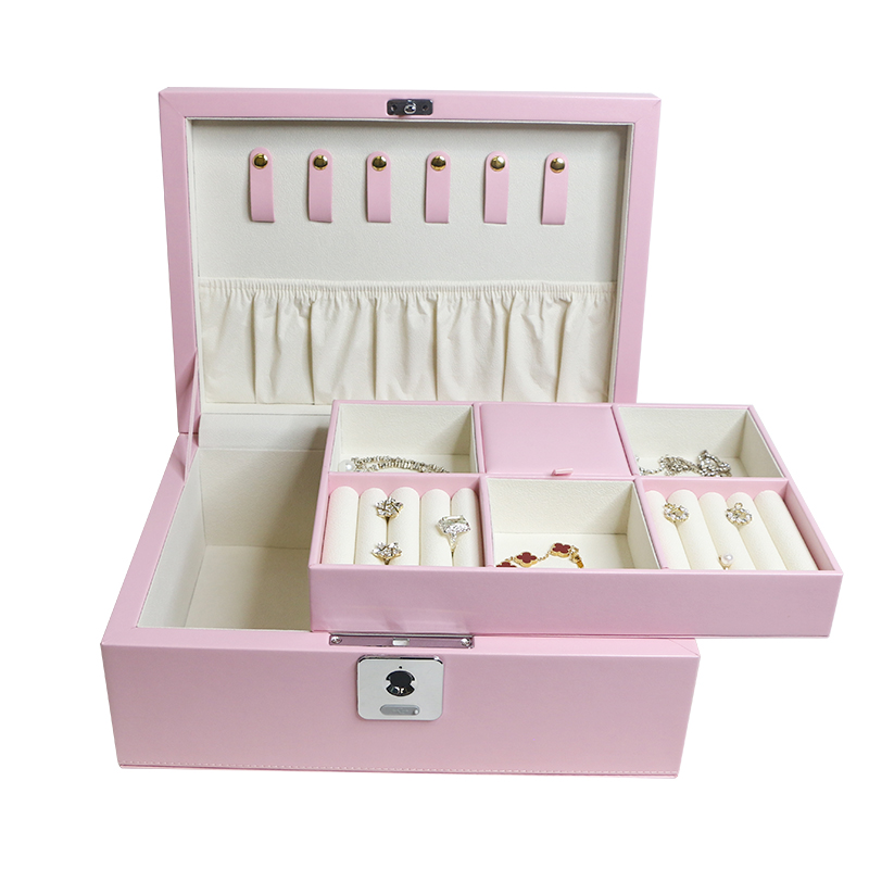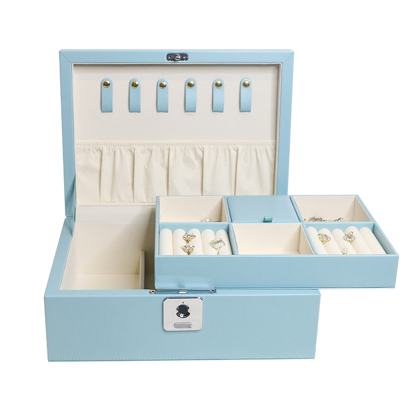 The box is made of high-quality PU material, which has a solid and durable texture. The interior is equipped with a soft flannel lining to gently wrap the surface of the jewelry, effectively preventing scratches and oxidation and discoloration; the zoning design is reasonable, and independent storage space such as ring grooves, necklace hooks, and earrings are reserved., allowing necklaces, earrings, rings, bracelets and other jewelry to be in their own place for easy access.