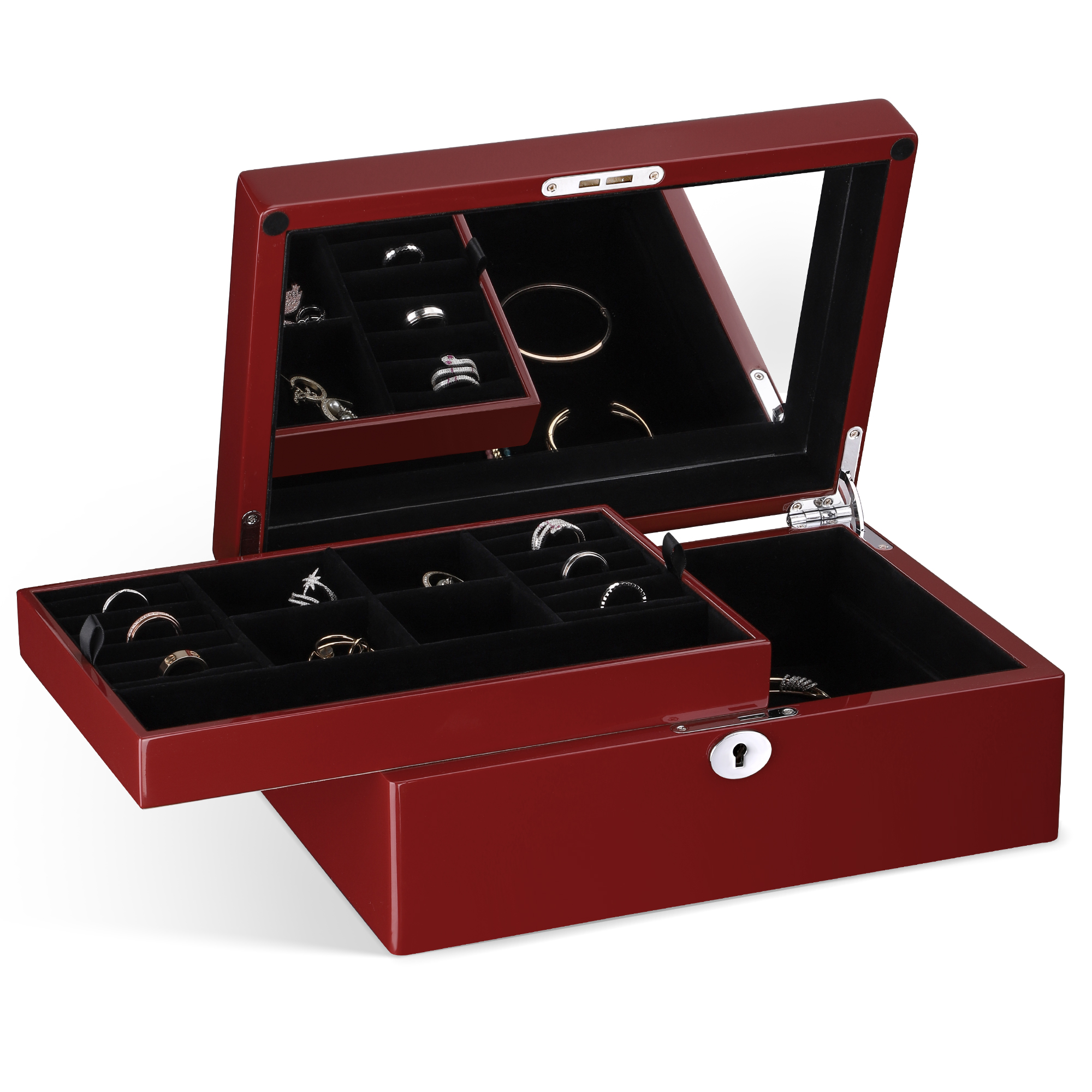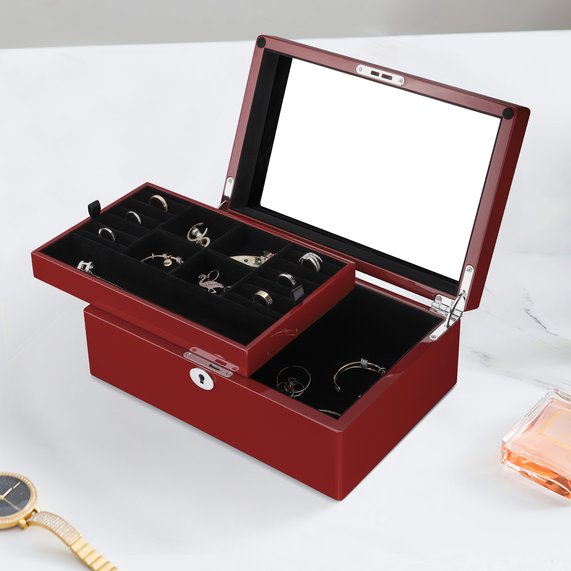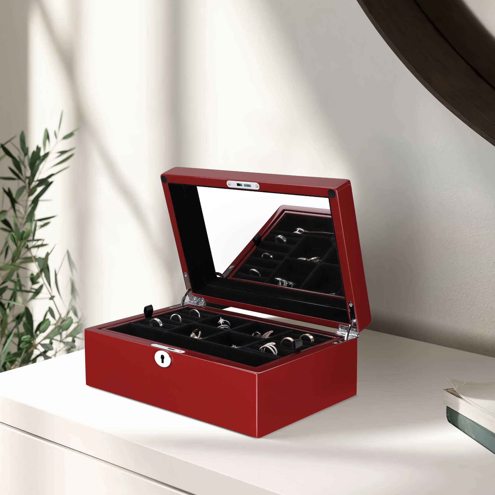 Your most cherished jewelry pieces—from daily essentials to heirloom treasures—deserve a home that is both secure and stunning. The Ruby Red Statement Box is designed for the collector who values bold elegance and uncompromising protection, transforming storage into a luxurious display.