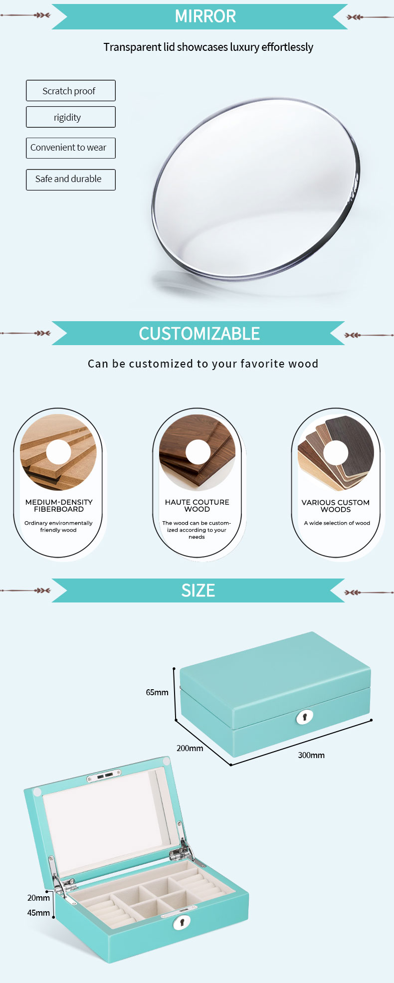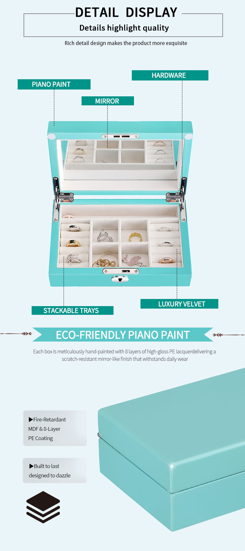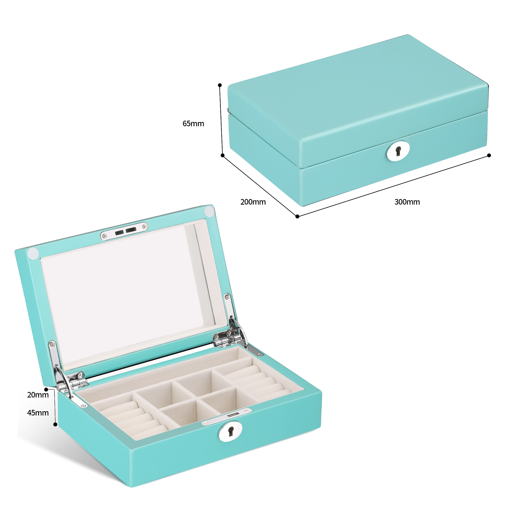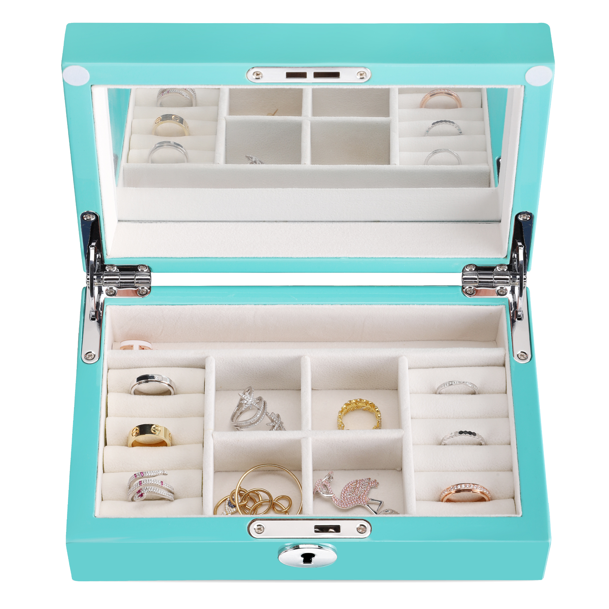 • Vibrant and Eye-Catching Color: This jewelry box features a distinctive, beautiful Turquoise/Tiffany Blue exterior with a smooth, polished finish. This vibrant color makes the organizer a stunning focal point and a fashionable accessory for any vanity, dresser, or bedroom.