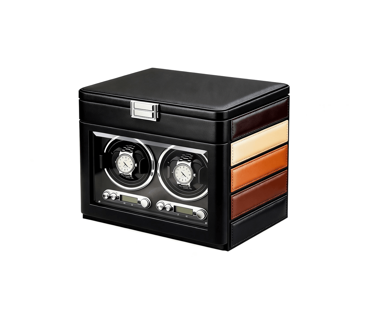 The intuitive control panel, with its clear digital display and tactile knobs, makes setup a breeze—even first-time users can easily program the perfect care routine for their watch.