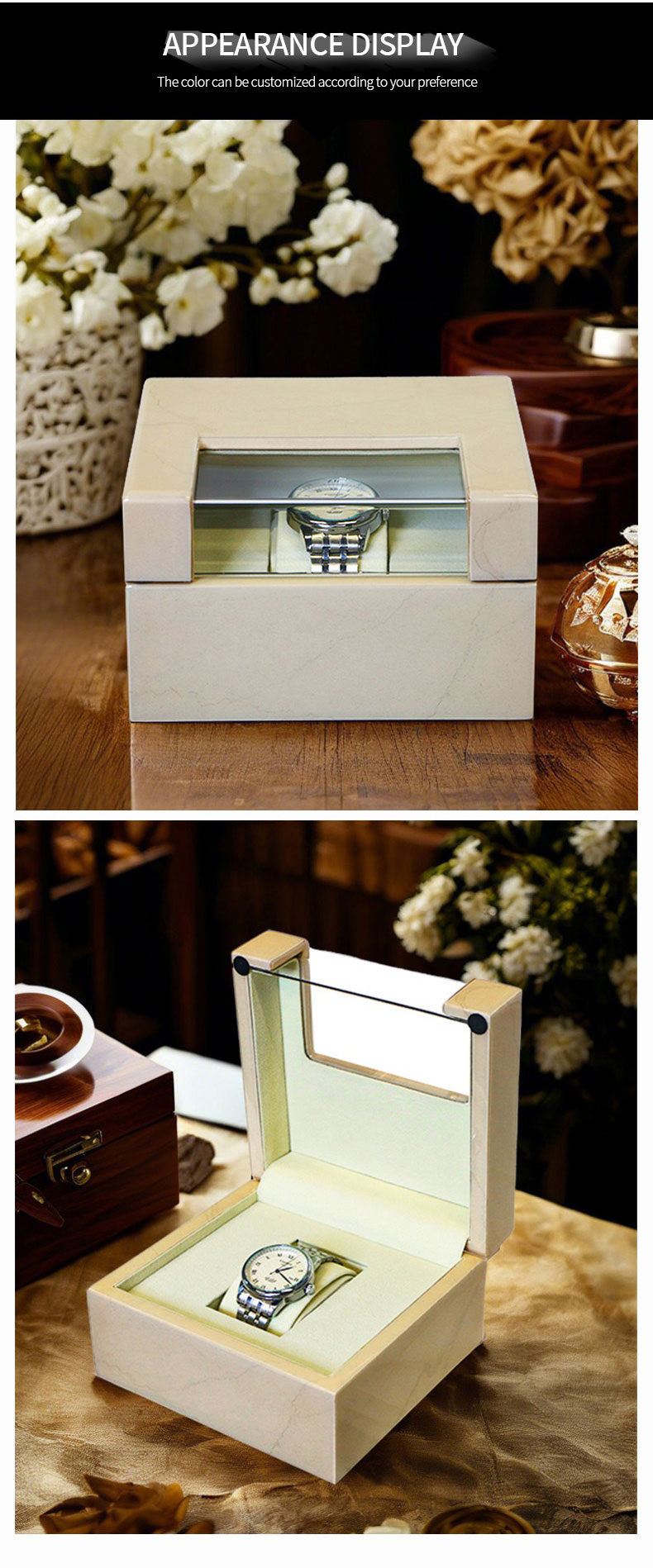 This sophisticated watch display and storage box boasts a sleek, modern aesthetic that perfectly balances practicality and visual appeal. Engineered to safeguard valuable timepieces while doubling as an elegant display showcase, it caters to discerning consumers who refuse to compromise on either protective functionality or decorative aesthetics for their watch collections.