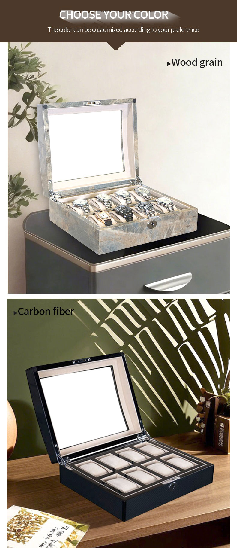 • Showcase and Protect: A large, clear acrylic viewing window on the lid allows you to admire your watches without having to open the box. It offers excellent protection from dust, moisture, and daily wear, while transforming your collection into a stunning display.