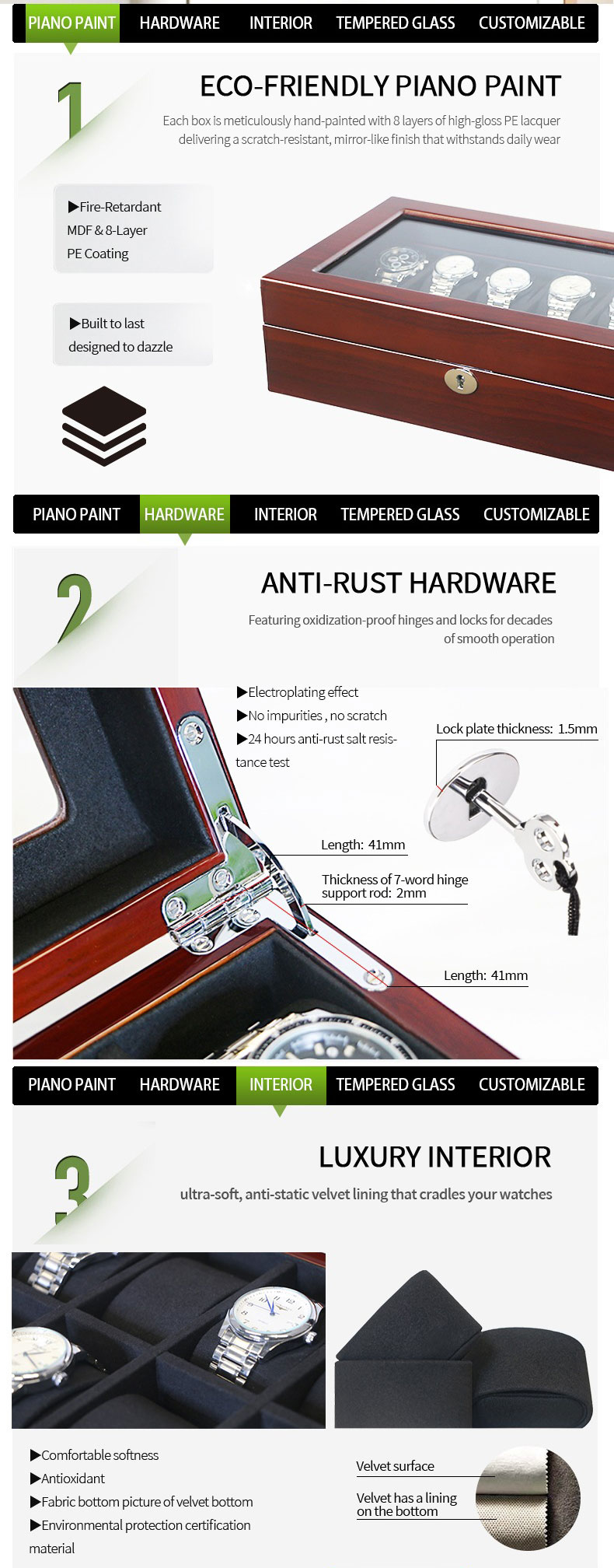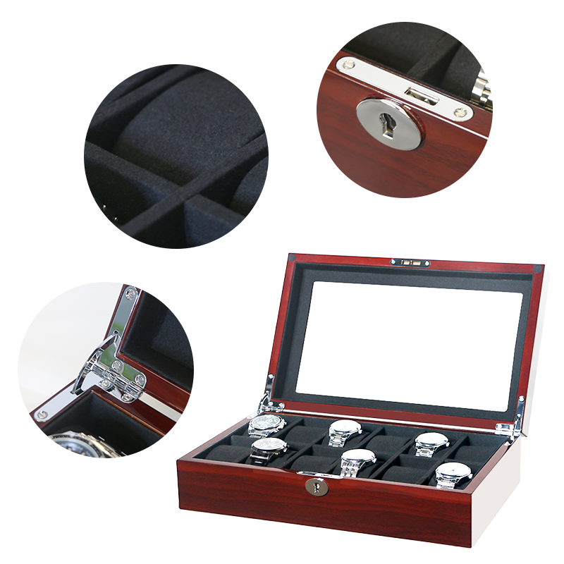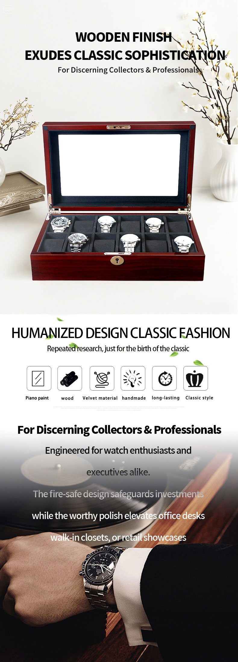 - Rich, Classic Finish: This watch box features a stunning deep cherry wood finish with a smooth, polished surface that exudes classic warmth and sophistication. The timeless color makes it a perfect addition to any study, office, or bedroom decor.