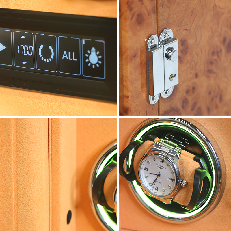 • Analog Control Knobs – Classic physical knobs allow intuitive, customizable rotation settings (direction and mode) for different watch winding needs.