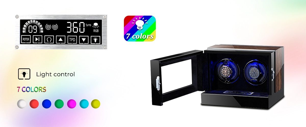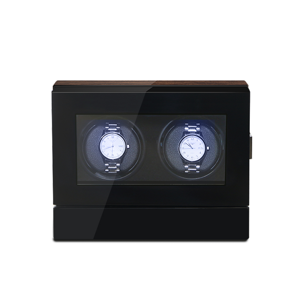 This state-of-the-art watch winder is designed for the discerning collector. It features a stunning high-gloss finish with elegant wood veneer accents and a clear acrylic window, perfect for showcasing your timepieces. The unit is powered by a quiet Japanese Mabuchi motor and is equipped with a modern touch screen control panel for effortless operation. With its anti-magnetization design, fully enclosed structure, and plush interior, this winder offers superior protection and style for your valuable watches.