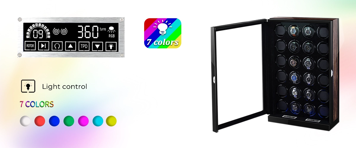 The new touch screen system provides a simple and precise way to manage your watch collection with a one-click start function for all rotors.