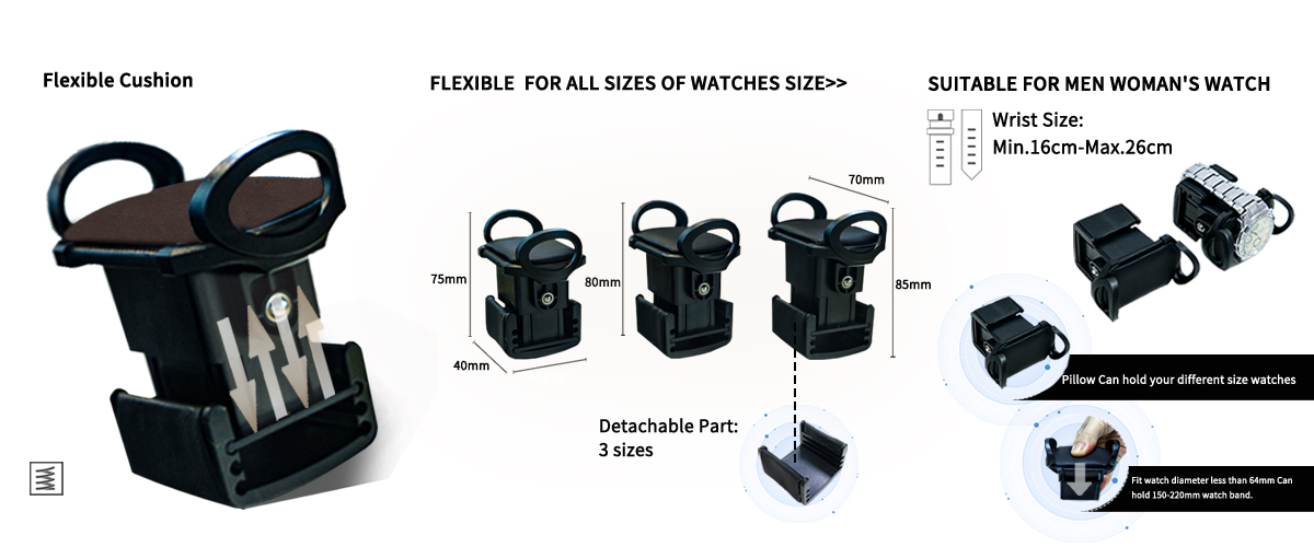 • Velvet-lined watch pillows: Gently cradles every timepiece case
