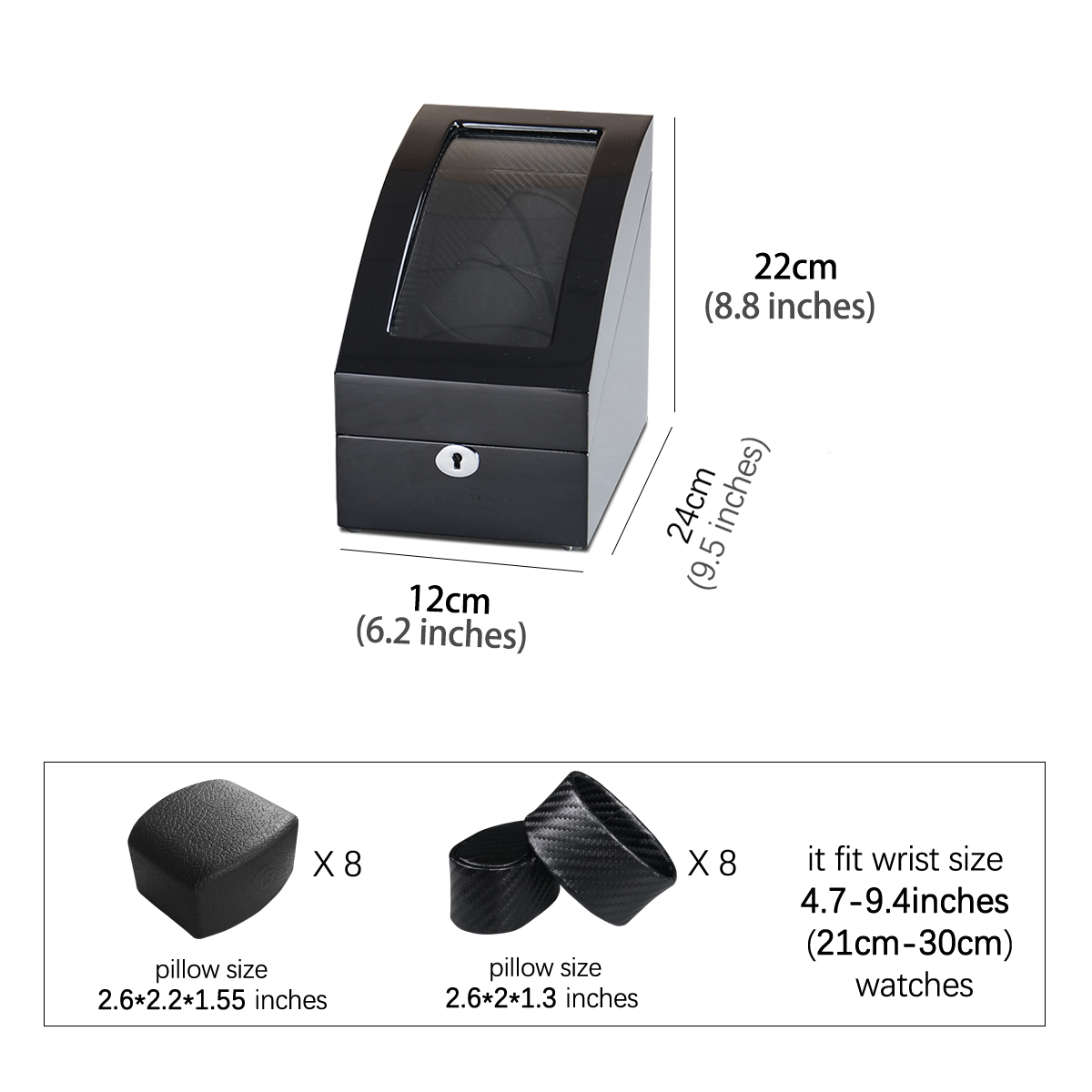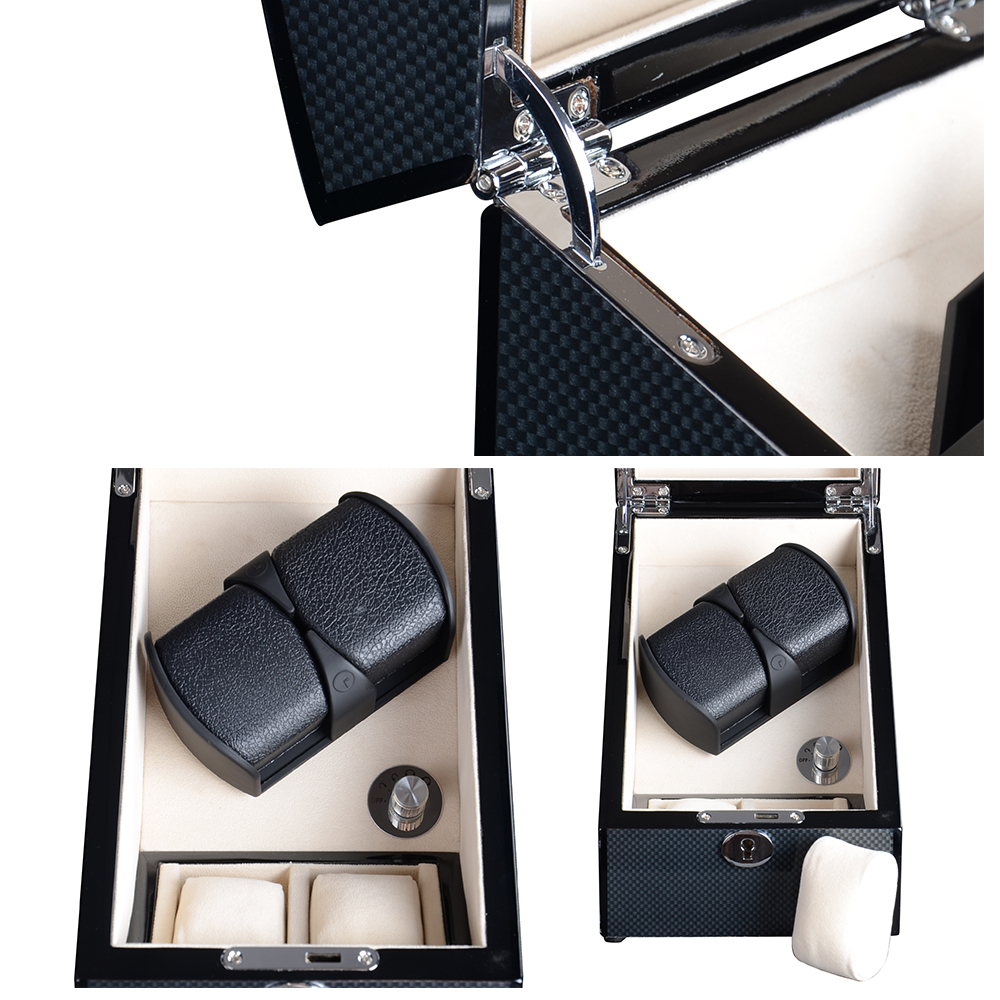 This elegant and spacious watch winder is designed to keep your collection of automatic timepieces operating with precision and style. Featuring a stunning high-gloss lacquer finish with an elegant wood veneer and a clear acrylic window, this winder beautifully displays your watches while maintaining their optimal function. The unit operates with a quiet Japanese Mabuchi motor, renowned for its reliable performance, ensuring your watches are always ready to wear. With its anti-magnetization design and a fully enclosed structure, this winder offers superior protection and style for your valuable watches.