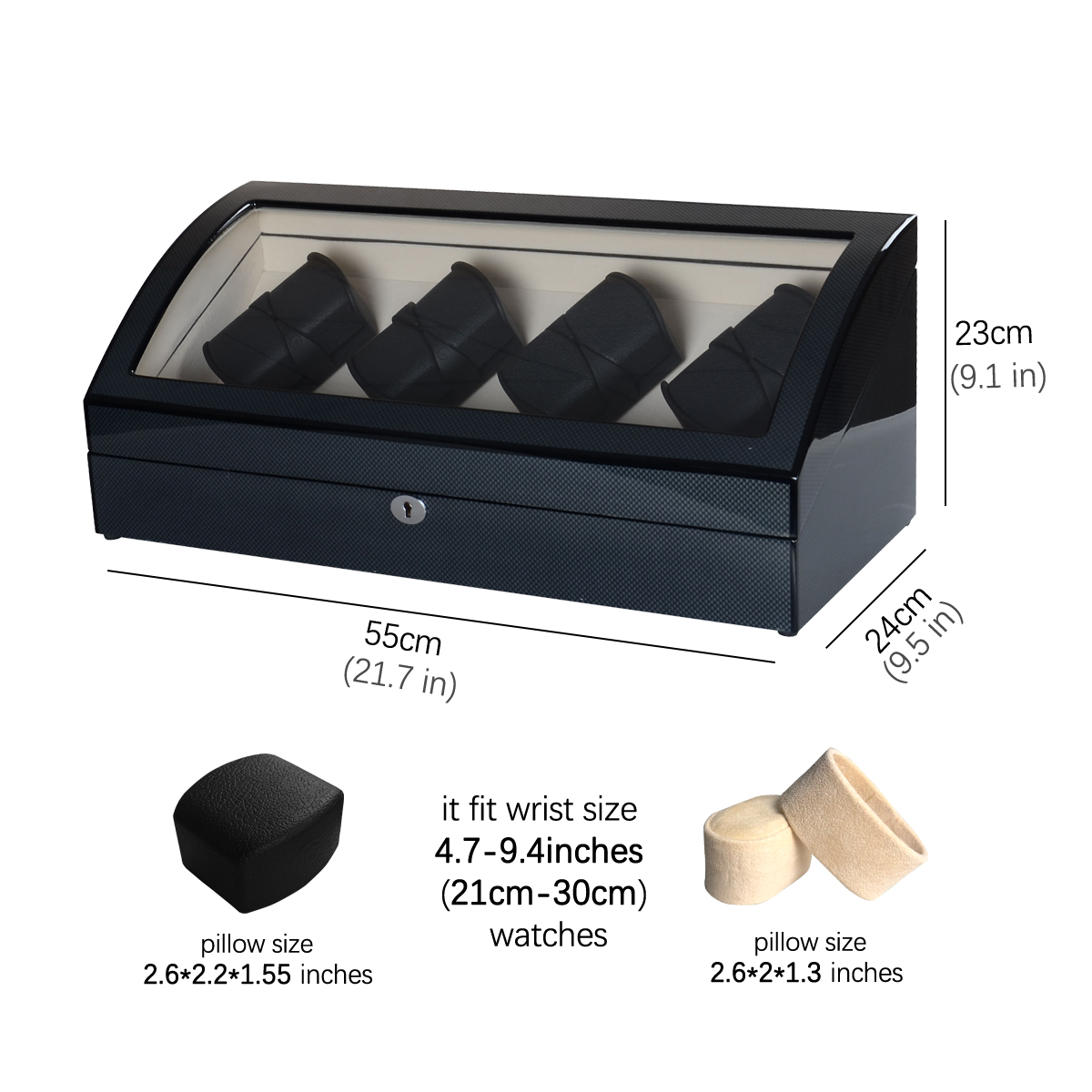 - Avg. Watch Capacity: 8-slot watch winder + 8-slot watch storage