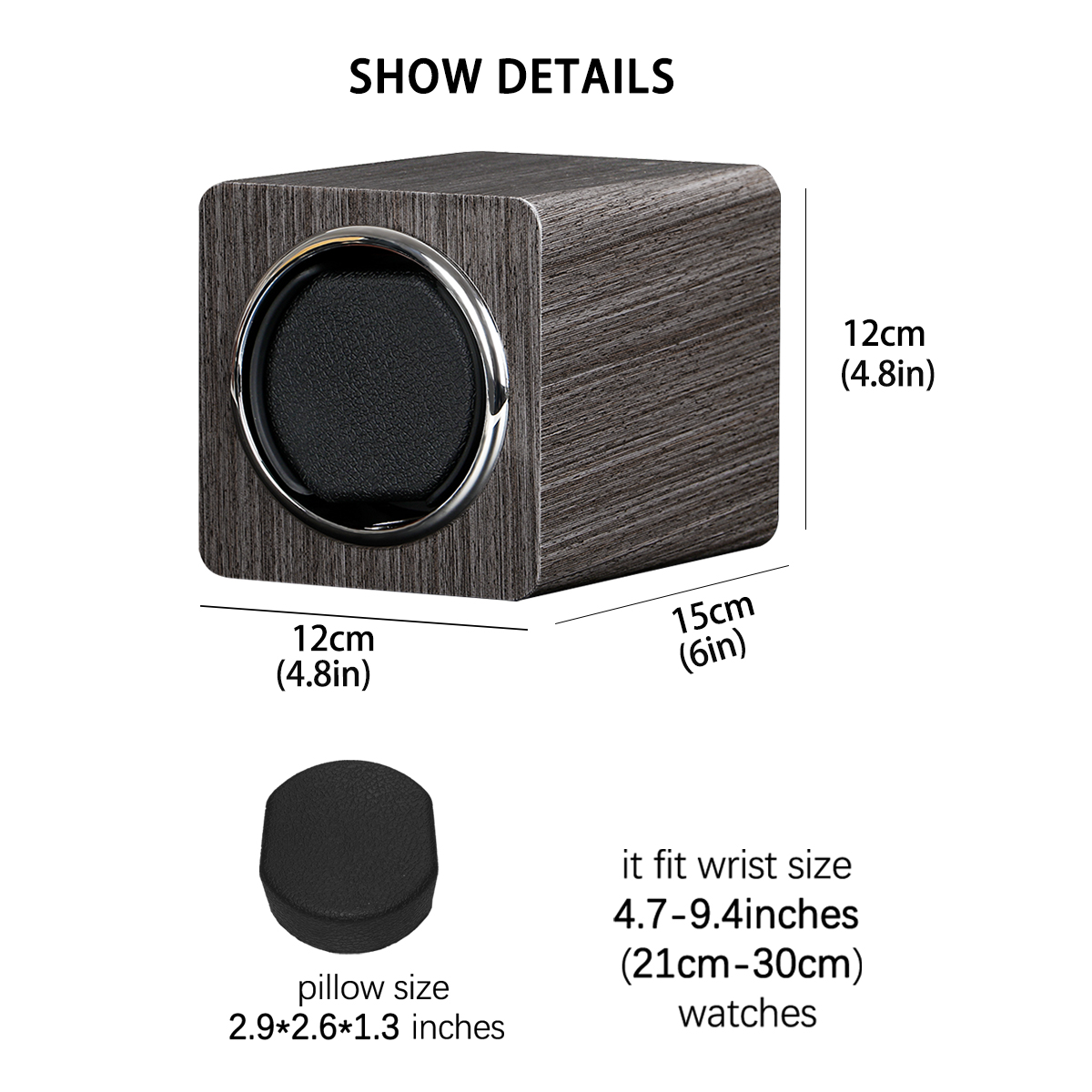 DIMENSIONS: Size:14x14x15cm The automatic chain box simulates the natural rotation of the wrist 8311-Wood Grain 1 watch winder